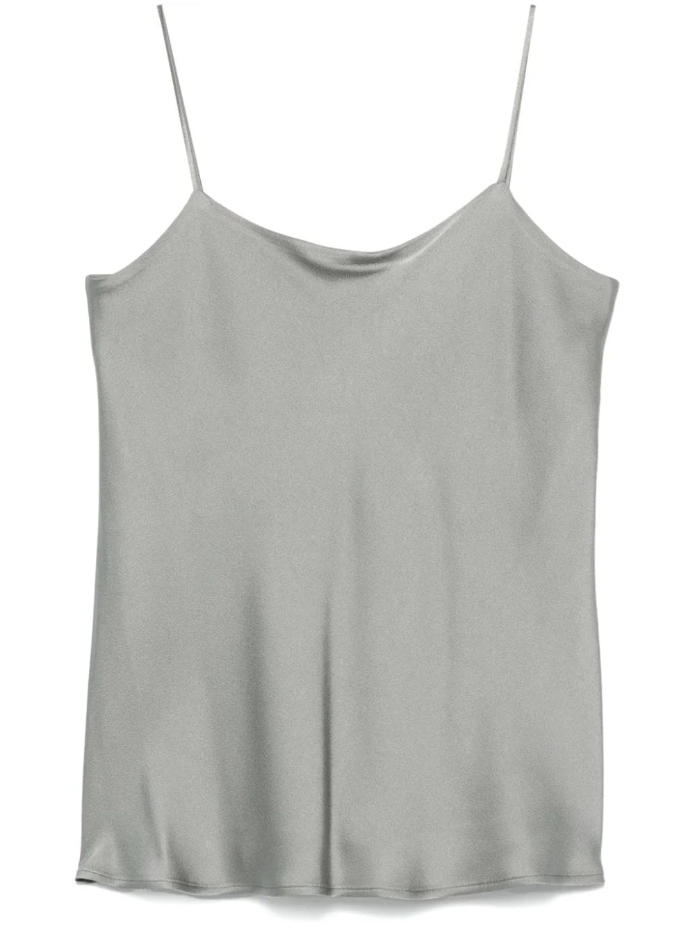 textured tank top Highlights - Medium grey - Textured finish - Spaghetti straps - Round neck - Sleeveless - Straight hem Imported Composition Viscose 100% SIZE & FIT Model measurements Height 5 ft 10 in(1.77 m) Bust/Chest 33.07 in(84 cm) Hips 37 in(94 cm) Waist 24.8 in(63 cm) FittingInformation Designed for a slim fit that sits just away from the body offering a close yet comfortable fit Made from a lightweight non-stretch fabric
