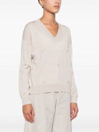 Herno Sweaters Highlights - Beige - V-neck - Long sleeves - Boxy shape - Gold embellishment - Scattered pattern Made in Italy Composition Fabric 100% SIZE & FIT Model measurements Height 5 ft 9 in(1.76 m) Bust/Chest 31.49 in(80 cm) Hips 35.03 in(89 cm) Waist 24.8 in(63 cm) Washing instructions Read Manufacturer Guidelines