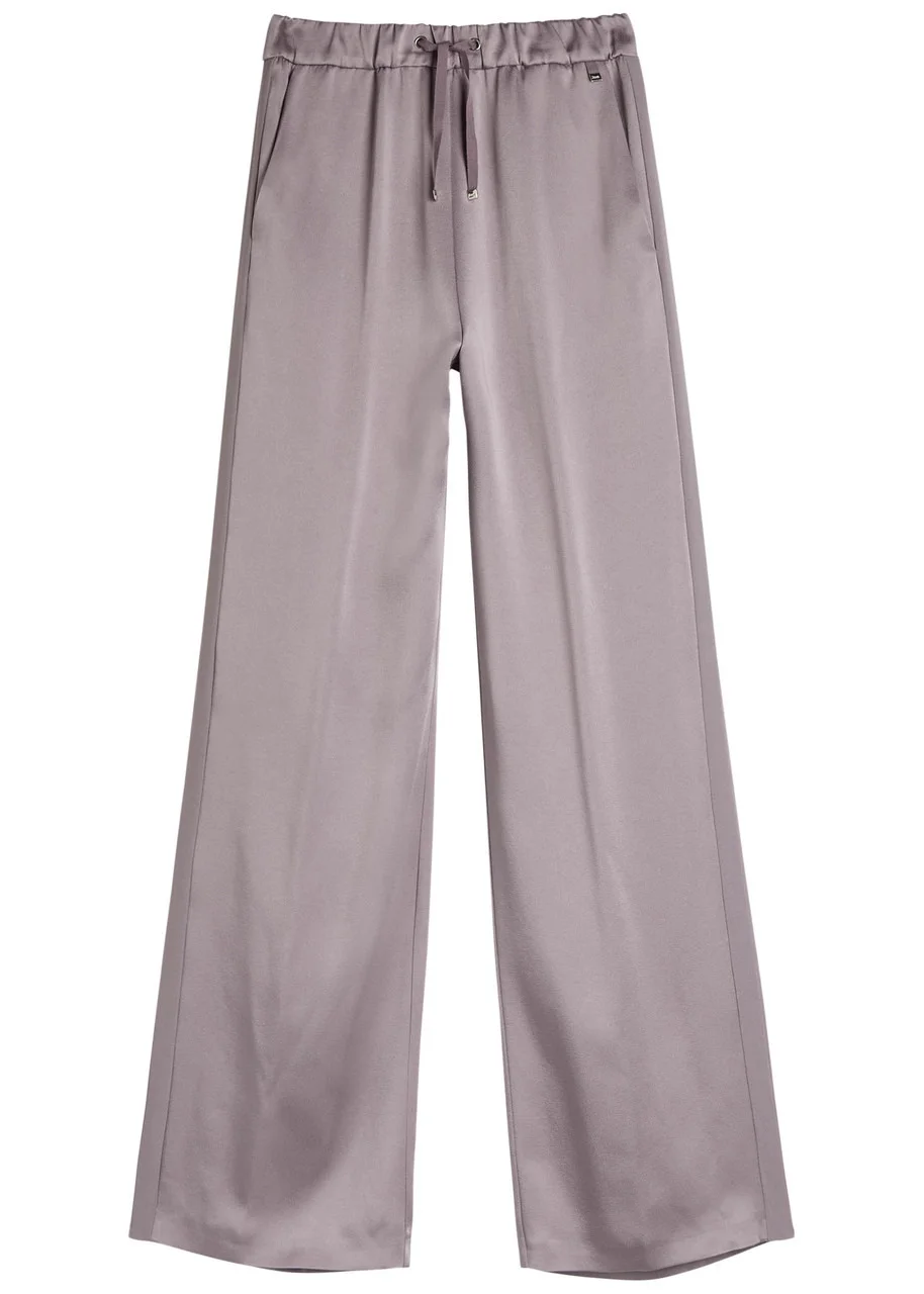 Info & Care Herno crepe de chine trousers Elasticated drawstring waistband, designer plaque at waist, side slip pockets, pressed crease through legs Pull on 72% acetate, 28% viscose Dry clean Size & Fit Inside leg length: 32.5 inches/ 83cm Midweight; Wide-leg cut Model is 5'9"/ 175cm and wears a size IT40