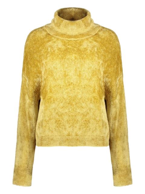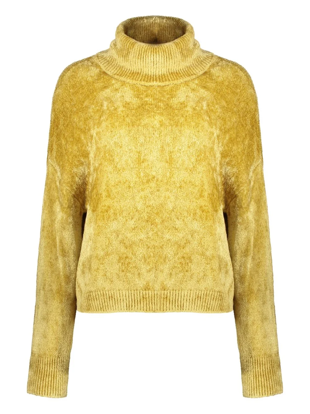 high-collar long-sleeve sweater Highlights - Yellow - High collar - Long sleeves - Ribbed hem and cuffs Made in Italy Composition Viscose 61%, Polyamide 28%, Cotton 11% Washing instructions Read Manufacturer Guidelines