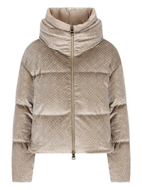 high-neck sequin jacket Highlights - Beige - Sequin embellishment - High neck - Zip closure - Side pockets - Quilted design Imported Composition Outer: Polyester 100% Lining: Polyamide 100%, Down 80%, Feather 20% Washing instructions Dry Clean Only