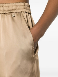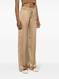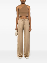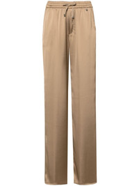 high-waist wide-leg trousers Highlights - Camel brown - Satin finish - High-waisted - Front gold-tone logo plaque - Two side slash pockets - Full-length - Straight wide leg - Elasticated drawstring waistband Made in Italy Composition Polyester 100% SIZE & FIT Model measurements Height 5 ft 11 in(1.8 m) Bust/Chest 31.49 in(80 cm) Hips 36.61 in(93 cm) Waist 24.4 in(62 cm) FittingInformation Designed for a straight-leg fit, these trousers allow for a close fit at the waist and an unrestricted, comfortable fit over the leg Adjust this piece’s waistband to your preference using the drawstring Made from a midweight non-stretch fabric This piece fits true to size – take your usual size Washing instructions Machine Wash