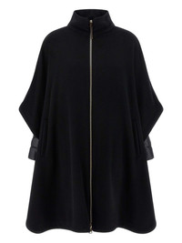 wool-padded cape Highlights - Black - Wool - High neck - Front zip closure - Side slits Made in Italy Composition Virgin Wool 100% Washing instructions Read Manufacturer Guidelines