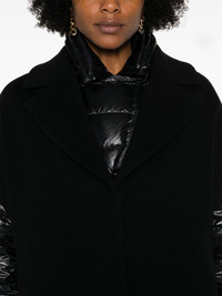 layered wool jacket Highlights - Black - Virgin wool - Felted - Contrasting panel detail - Layered design - Notched collar - Long sleeves - Quilted panels - Two side inset pockets - Straight hem - Front press-stud fastening Made in Italy Composition Outer: Virgin Wool 72%, Polyamide 28% Lining: Acetate 65%, Polyester 35% SIZE & FIT Model measurements Height 5 ft 11 in(1.8 m) Bust/Chest 32.67 in(83 cm) Hips 35.82 in(91 cm) Waist 25.98 in(66 cm) FittingInformation Designed for a relaxed fit, this piece allows for comfort and movement when worn Made from a padded non-stretch fabric, giving it no natural elasticity This piece fits true to size – take your usual size