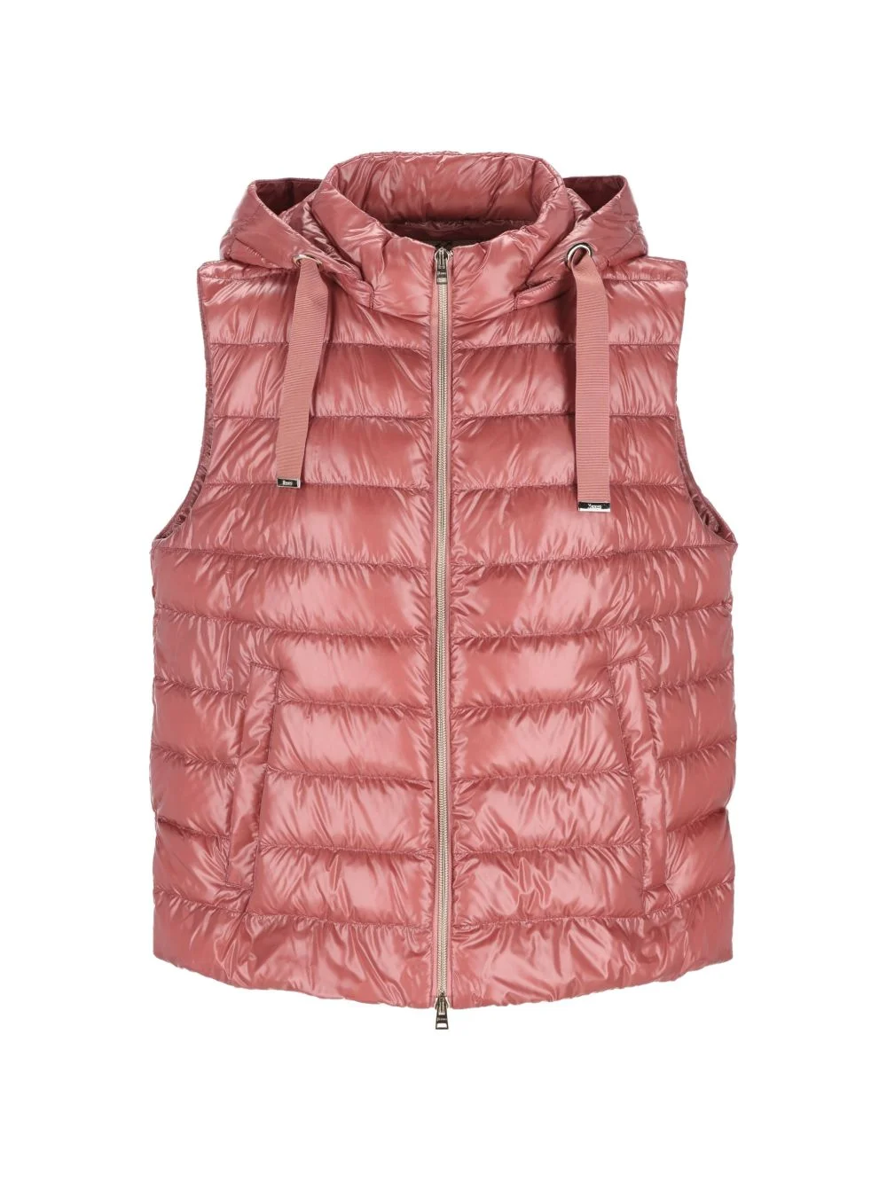 hooded down gilet Highlights - Pink - Quilted - Hooded - Zip fastening - Drawstring at hood - Sleeveless Imported Composition Body: Polyester 61%, Cotton 39% Trims: Cotton 55%, Polyester 45% Filling: Down 90%, Feather 10%