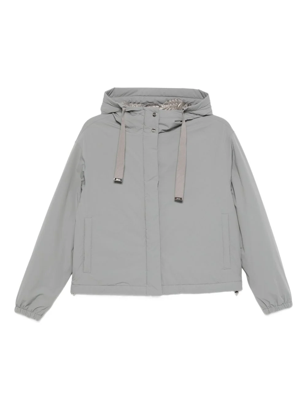 hooded drawstring jacket Highlights - Grey - Hooded neckline - Drawstring hood - Long sleeves - Elasticated cuffs Imported Composition Outer: Polyurethane 100%, Polyamide 86%, Elastane 14% Lining: Polyamide 100% SIZE & FIT Model measurements Height 5 ft 10 in(1.79 m) Bust/Chest 31.88 in(81 cm) Hips 35.43 in(90 cm) Waist 23.62 in(60 cm) Washing instructions Dry Clean Only