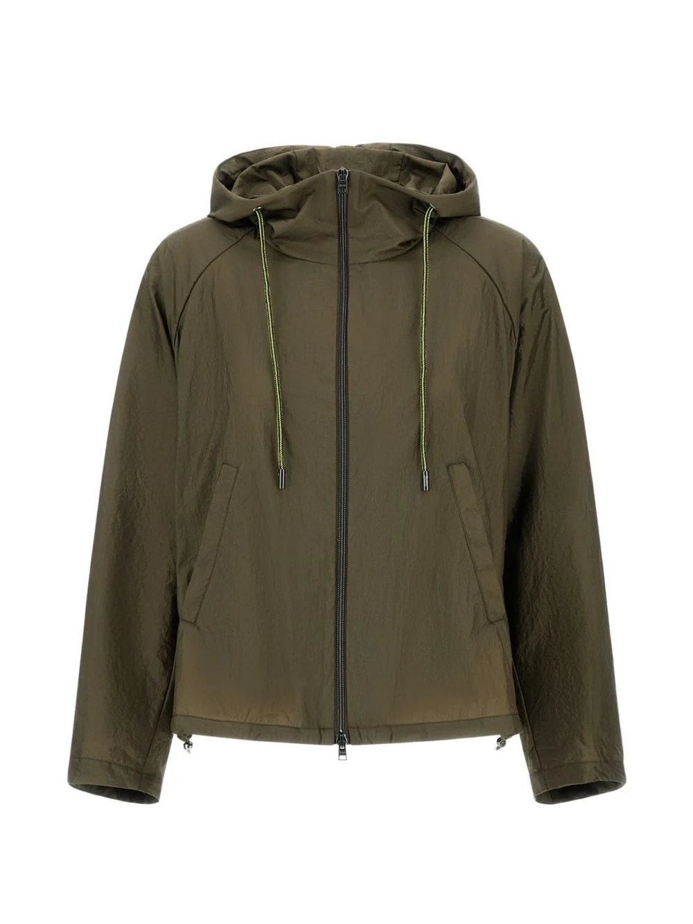 hooded jacket Highlights - Olive green - Drawstring fastening - Hood - Zip fastening - Long sleeves - Front pockets Imported Composition Fabric 100% Washing instructions Read Manufacturer Guidelines