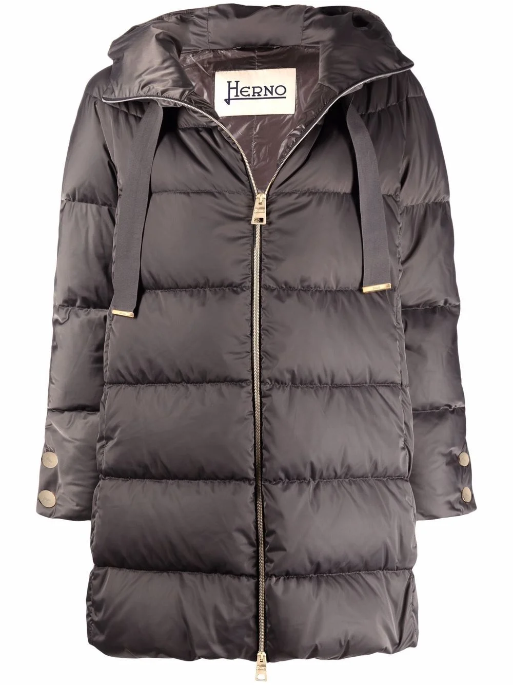 hooded padded coat Designed for effortless cold-weather styling, this Herno coat features a feather-down interior. A protective high-neck design and a drawstring hood finish off this design, ensuring supreme comfort in colder climes. Imported Composition Polyester 100% Lining: Polyamide 100%, Feather Down 100% SIZE & FIT Model measurements Height 5 ft 10 in(1.78 m) Bust/Chest 31.88 in(81 cm) Hips 34.64 in(88 cm) Waist 24.01 in(61 cm) FittingInformation This piece fits true to size. We recommend you get your regular size Cut for a loose fit Made with a mid-weight non-stretch fabric Washing instructions Dry Clean Only
