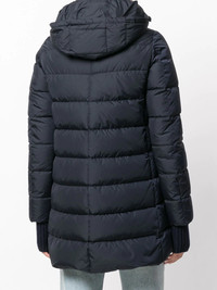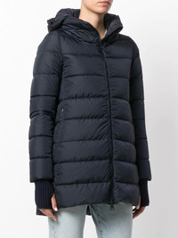 hooded puffer parka Highlights - Navy blue - Goose down - Padded design - Quilted - High neck - Drawstring hood - Two-way zip fastening - Long sleeves - Ribbed cuffs - Two side zip-fastening pockets - Straight hem Made in Italy Composition Lining: Goose Down 80%, Feather 20% Outer: Polyamide 100% SIZE & FIT Model measurements Height 5 ft 11 in(1.8 m) Bust/Chest 33.85 in(86 cm) Hips 35.03 in(89 cm) Waist 24.8 in(63 cm) Washing instructions Dry Clean Only