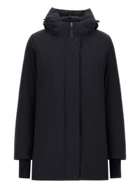 hooded puffer jacket Highlights Imported Composition Outer: Polyester 100%, Polyurethane 100% Lining: Polyamide 100%, Down 80%, Feather 20%