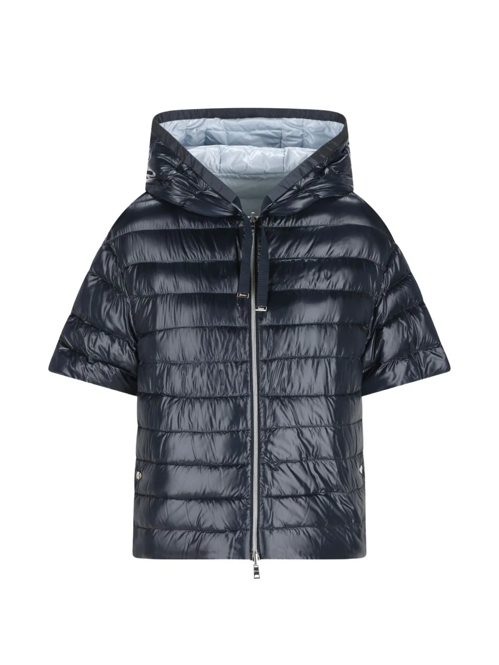 hooded quilted coat Highlights - Blue - Quilted - Hood - Short sleeves - Zip fastening - Drawstring detail Imported Composition Lining: Polyester 100%, Down 90%, Feather 10% Outer: Polyamide 100% Washing instructions Read Manufacturer Guidelines