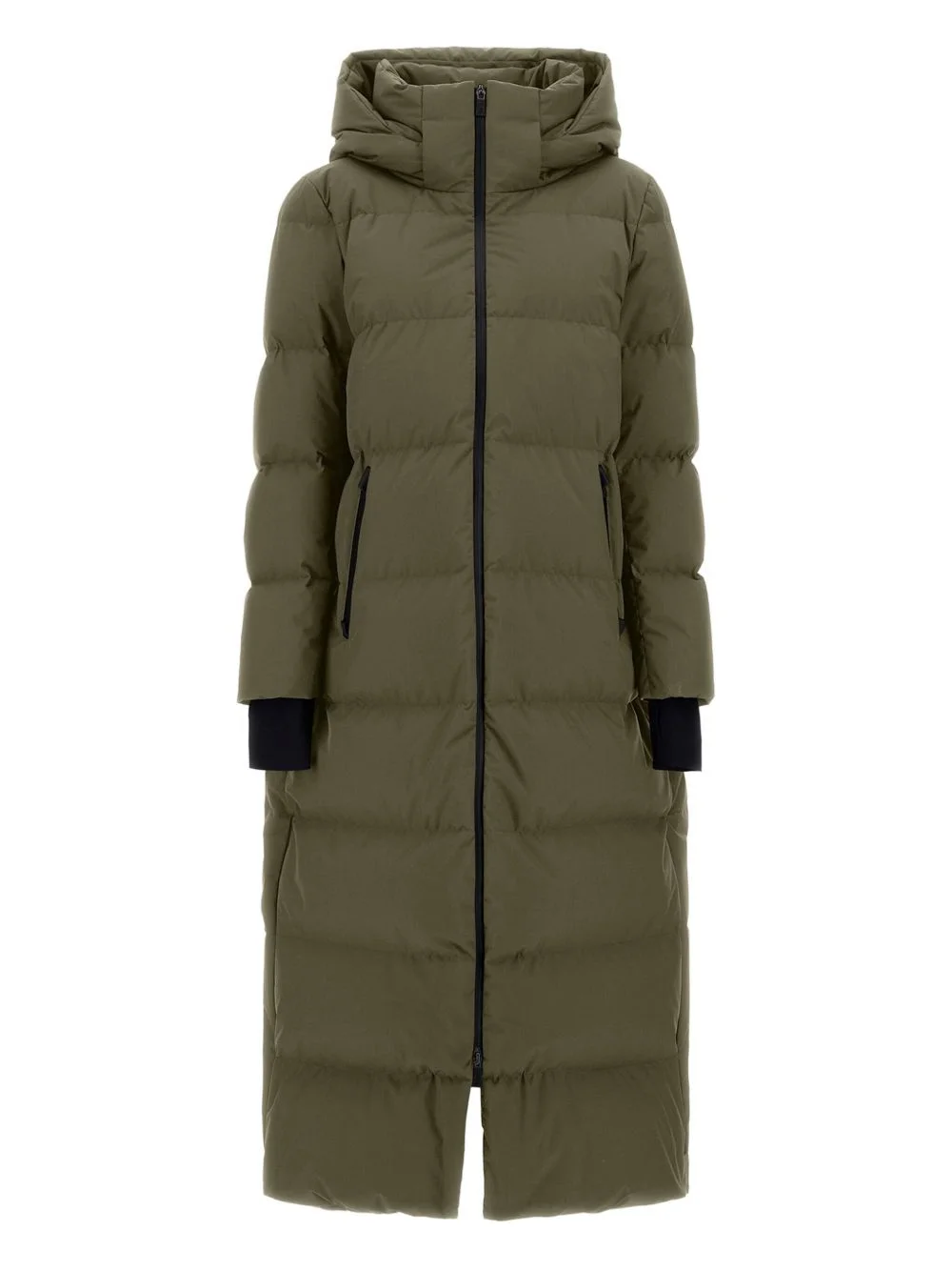 hooded quilted coat Highlights - Olive green - Quilted design - Zip fastening - Hooded neckline - Long sleeves - Side pockets Imported Composition Lining: Polyamide 100%, Down 80%, Feather 20% Outer: Polyester 100% Washing instructions Read Manufacturer Guidelines