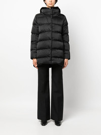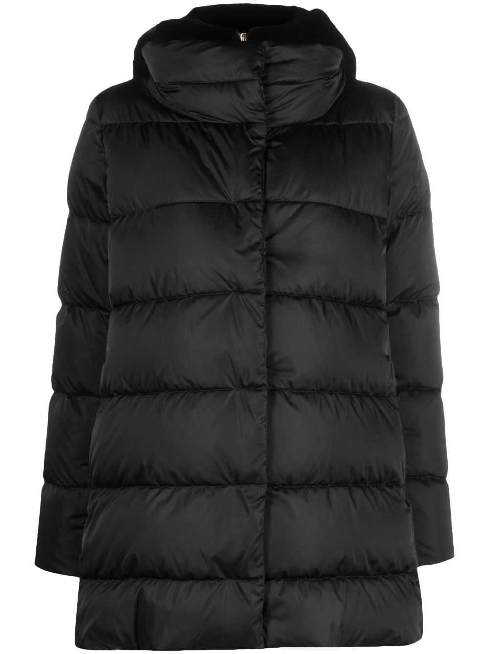 hooded quilted coat Balancing fashion with functionality, this Herno coat is lined with a detachable, hooded faux-fur gilet for extra protection against the elements. It’s crafted from black shell that’s quilted to evenly distribute the lightweight and insulating down padding. Highlights - Black - Down-feather filling - Padded design - Quilted - Detachable hooded gilet lining - Funnel neck - Front press-stud fastening - Front zip fastening - Long sleeves - Two side slit pockets - High-low hem Imported Composition Lining: Polyamide 100%, Feather Down 100% Outer: Polyester 100% SIZE & FIT Model measurements Height 5 ft 11 in(1.8 m) Bust/Chest 35 in(89 cm) Hips 35 in(89 cm) Waist 23.6 in(60 cm) FittingInformation Designed to be unstructured, offering a loose fit throughout The detachable panel offers the preference for a different fit Made from a padded non-stretch fabric, giving it no natural elasticity This piece fits true to size – take your usual size