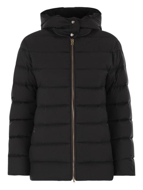 hooded quilted jacket Highlights - Beige - Quilted - High collar - Hood - Zipped pockets - Metal logo Imported Composition Outer: Polyester 100%, Polyurethane 60%, Viscose 40% Lining: Polyamide 100%, Goose Down 80%, Goose Feather 20%
