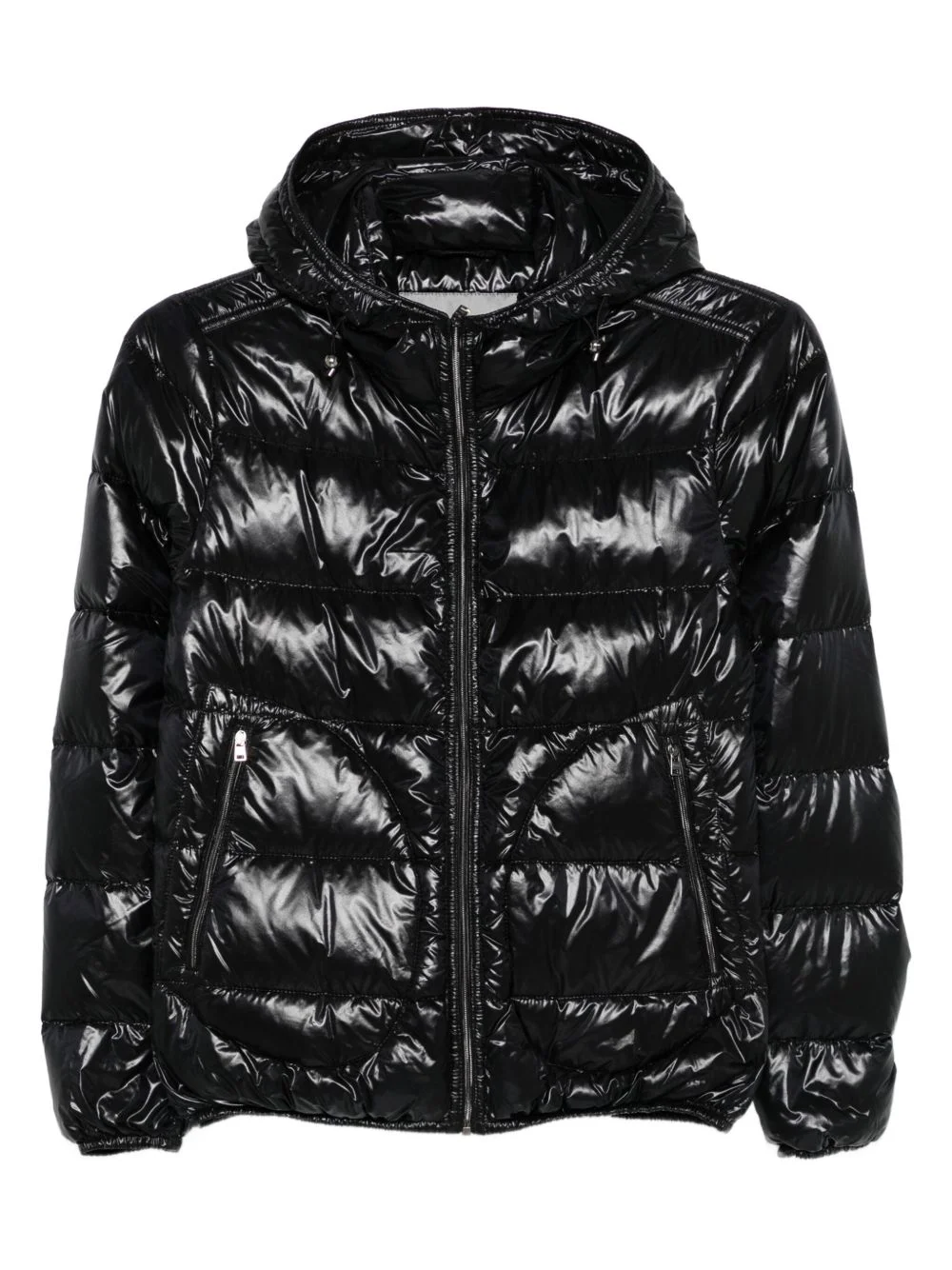 hooded quilted jacket Highlights - Black - Quilted design - Hooded neckline - Zip fastening - Side zip pockets - Shiny shell Imported Composition Lining: Polyamide 100%, Goose Down 90%, Goose Feather 10% Outer: Polyamide 100% SIZE & FIT Model measurements Height 5 ft 10 in(1.77 m) Bust/Chest 33.07 in(84 cm) Hips 37 in(94 cm) Waist 24.8 in(63 cm) Washing instructions Hand Wash