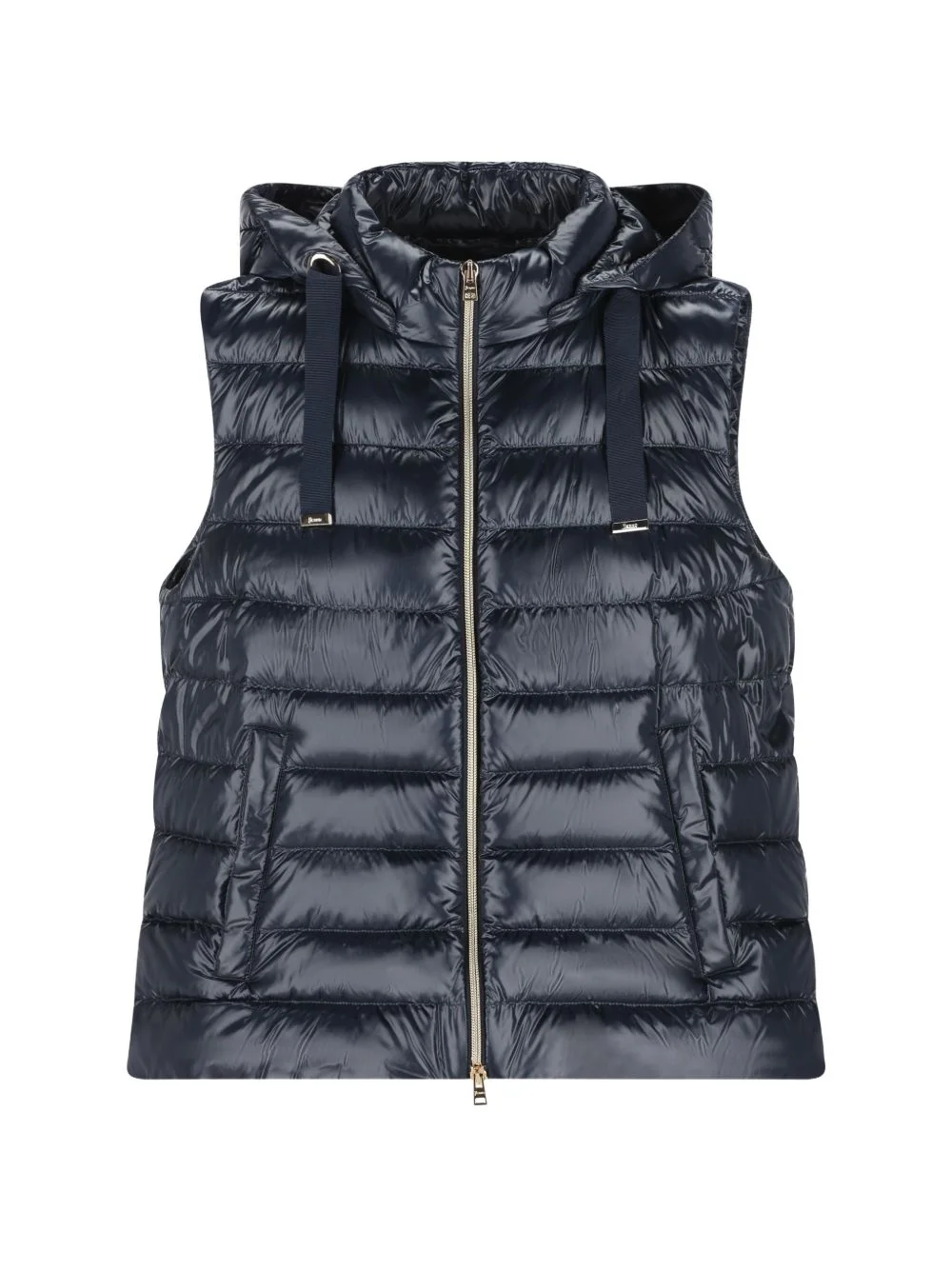 hooded quilted jacket Highlights - Blue - Quilted - Hood - Zip fastening - Sleeveless - Side slits Imported Composition Cotton 55%, Polyester 45% Filling: Down 90%, Feather 10%