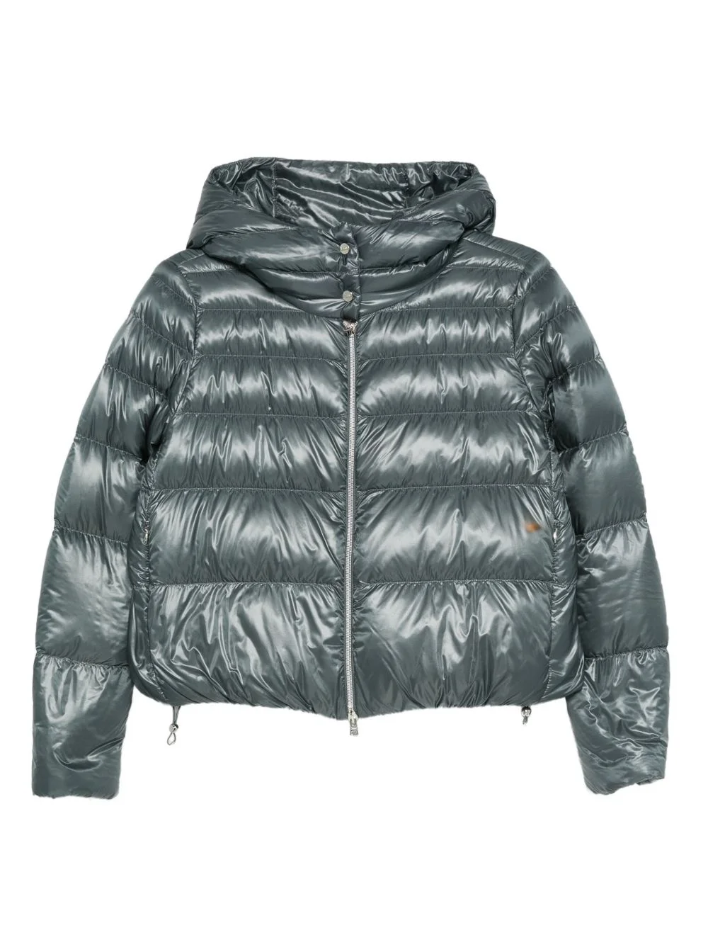 hooded quilted jacket Highlights - Grey - Quilted design - Hooded neckline - Zip fastening - Long sleeves - Drawstring hem Imported Composition Outer: Polyamide 100% Lining: Polyamide 100%, Goose Down 90%, Goose Feather 10% SIZE & FIT Model measurements Height 5 ft 10 in(1.78 m) Bust/Chest 33.85 in(86 cm) Hips 36.61 in(93 cm) Waist 26.77 in(68 cm) FittingInformation Designed for a relaxed fit, this piece allows for comfort and movement when worn The internal drawstring at the hem allows for fitted preferences Made from a padded non-stretch fabric, giving it no natural elasticity Washing instructions Dry Clean Only