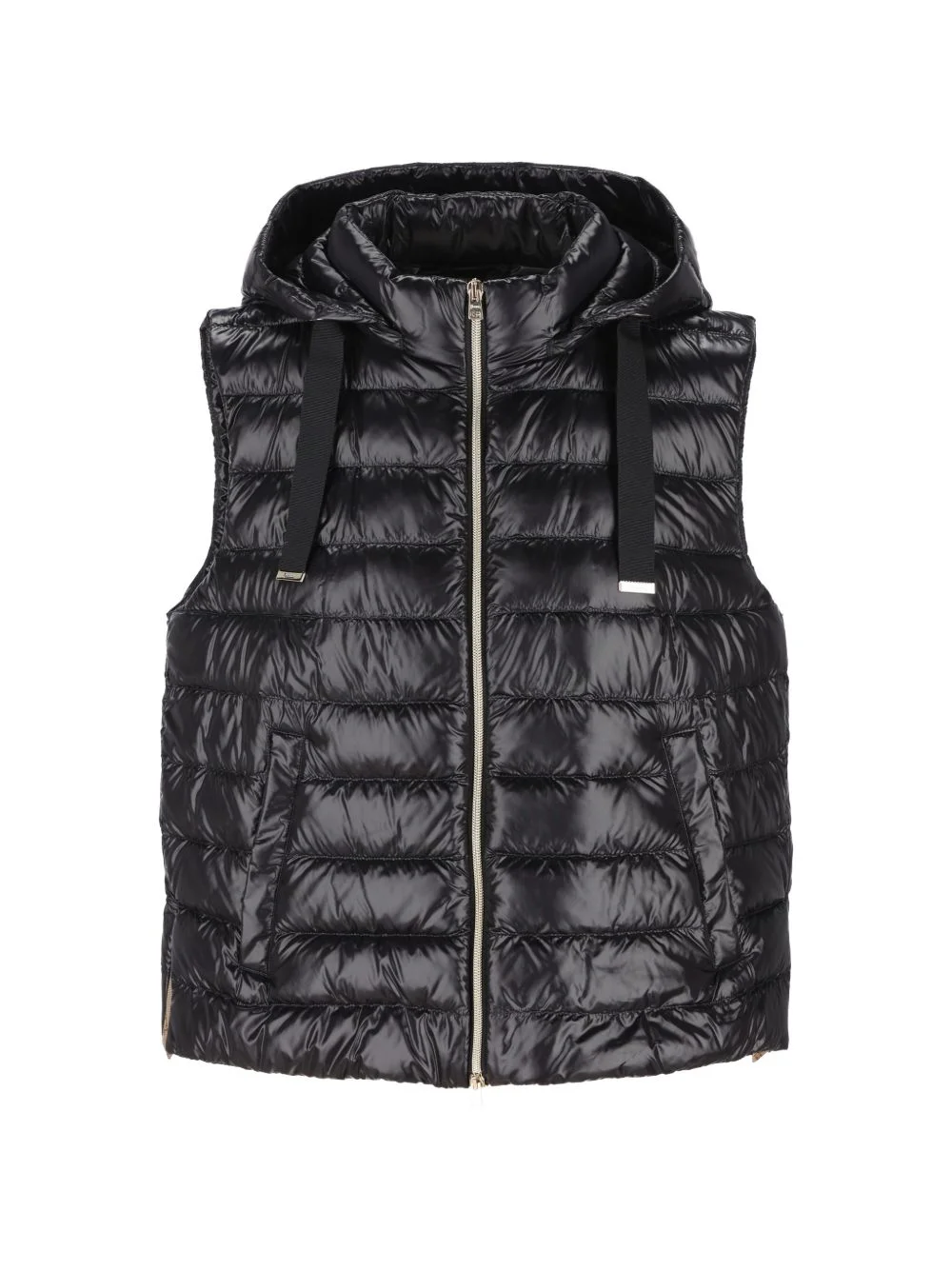 hooded quilted jacket Highlights - Black - Quilted - Hood - Zip fastening - Sleeveless - Tabs Imported Composition Coating: Polyester 61%, Cotton 39% Trims: Cotton 55%, Polyester 45% Filling: Down 90%, Feather 10%