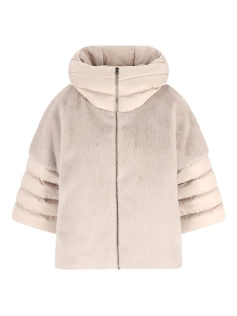 hooded quilted jacket Highlights - Brown - Artificial fur - Hooded neckline - Front zip fastening - Quilted sleeves Imported Composition Outer: Artificial Fur 100%, Polyester 100% Lining: Down 80%, Feather 20% SIZE & FIT Model measurements Height 5 ft 9 in(1.76 m) Bust/Chest 31.49 in(80 cm) Hips 35.03 in(89 cm) Waist 24.8 in(63 cm) Washing instructions Read Manufacturer Guidelines