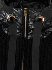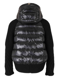 hooded ribbed cardigan Highlights - Black - Ribbed knit - Hood - Front zip fastening - Front pockets - Ribbed cuffs and hem Made in Italy Composition Outer: Virgin Wool 100%, Polyamide 100%, Cotton 55%, Polyester 45% Lining: Polyamide 100%, Down 90%, Feather 10% Washing instructions Read Manufacturer Guidelines