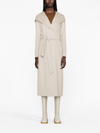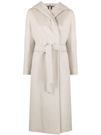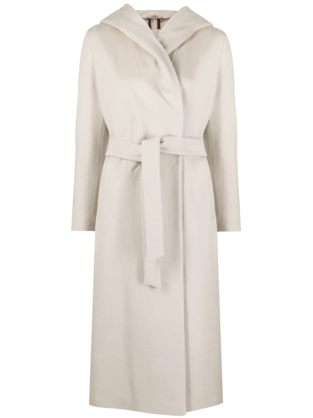 hooded virgin-wool coat Clean, contemporary lines elevate the classic virgin-wool construction of this Herno coat. Its lapels cocoon over the shoulders to meet the draped hood, while a concealed double-breasted front fastening maintains the streamlined look of the calf-length silhouette. It’s finished with a detachable belt and checked monogram lining. Highlights - Ecru - Virgin wool - Classic hood - Long sleeves - Concealed double-breasted front fastening - Belted waist - Two side welt pockets - Rear slit - Straight hem - Logo-print lining - Below-knee length Made in Italy Composition Lining: Polyester 100% Outer: Virgin Wool 100% SIZE & FIT Model measurements Height 5 ft 11 in(1.8 m) Bust/Chest 34.25 in(87 cm) Hips 35.82 in(91 cm) Waist 24.8 in(63 cm) FittingInformation Designed to be unstructured, offering a loose fit throughout The tie fastening gives an adaptable and personalised fit Made from a midweight non-stretch fabric This piece fits true to size – take your usual size