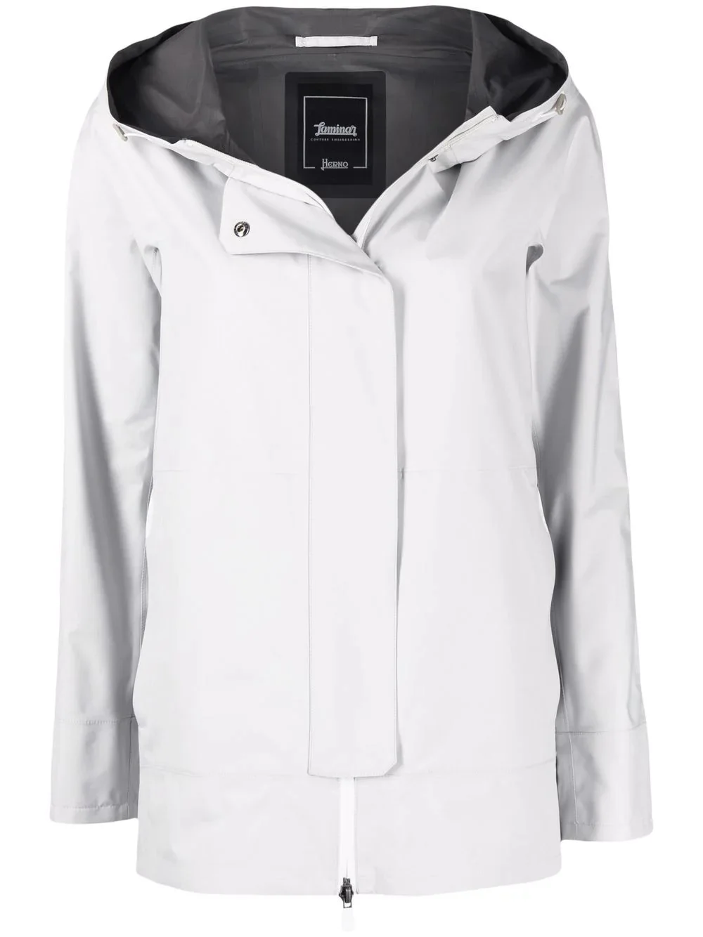 hooded zip-up track jacket light grey drawstring hood front zip fastening long sleeves two side slit pockets straight hem Imported Composition Polyester 100%, Polytetrafluoroethylene (PTFE) 100% Washing instructions Hand Wash