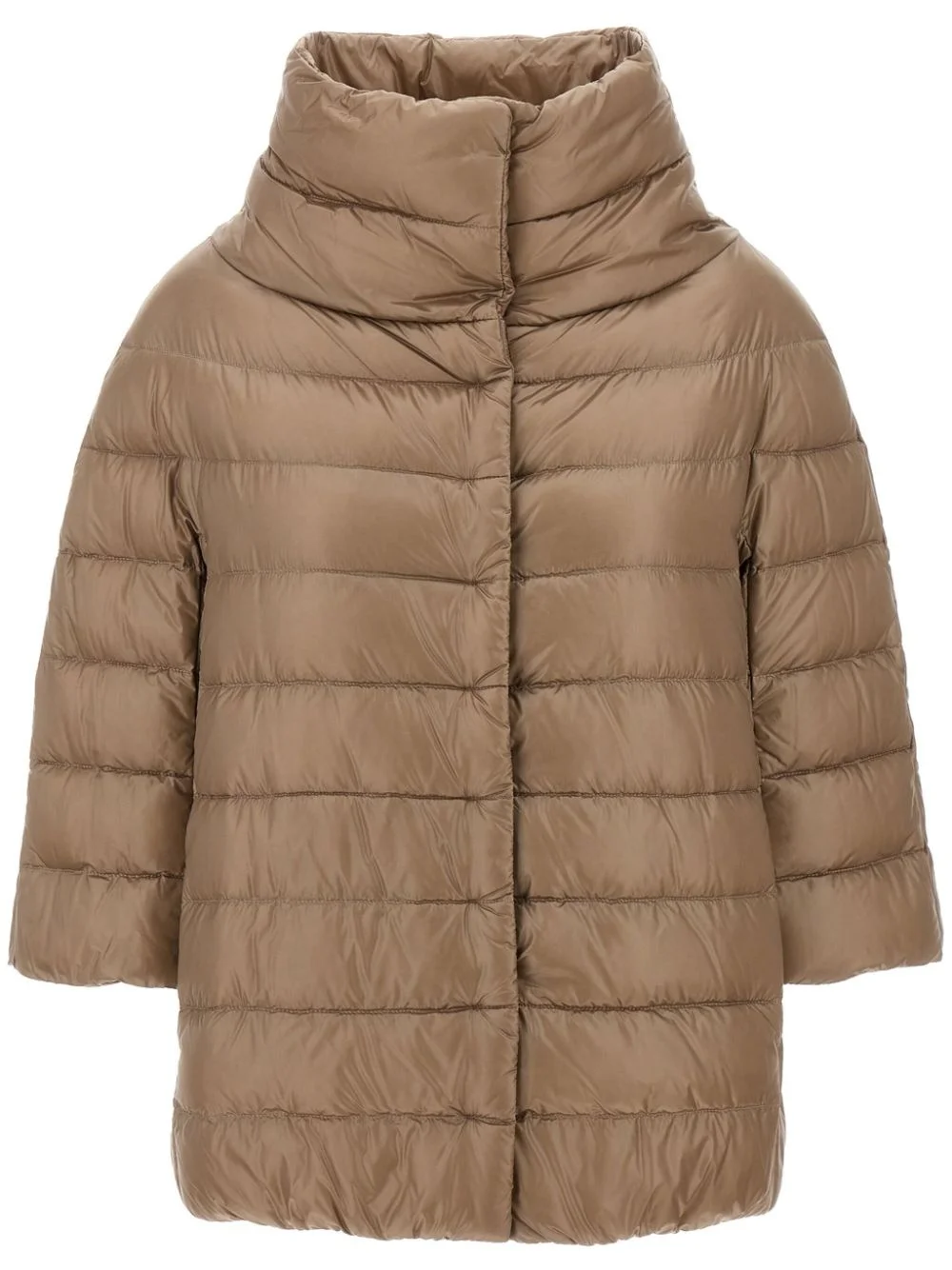 Iconic Aminta jacket Highlights - Beige - Feather down and cotton blend - Beige - Concealed front press-stud fastening - Two side slit pockets - Funnel neck - Three-quarter length sleeves Imported Composition Lining: Feather Down 100%, Polyamide 100%, Cotton 60%, Acetate 40% Outer: Polyamide 100% SIZE & FIT Measurement BUST 37.79 in(96 cm) LENGTH 23.22 in(59 cm) WAIST 38.58 in(98 cm) SLEEVE LENGTH 15.74 in(40 cm) Shoulder Width 22.04 in(56 cm) Washing instructions Hand Wash