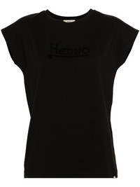 logo-embellished cap-sleeve T-shirt Highlights - Black - Cotton blend - Jersey texture - Logo rhinestone embellishment - Silver-tone logo plaque to the side - Crew neck - Cap sleeves - Straight hem Made in Italy Composition Cotton 55%, Polyester 45% Washing instructions Machine Wash