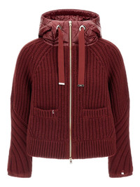 hooded ribbed jacket Highlights - Dark red - Ribbed knit - Quilted panel - Front zip fastening - Hooded neckline - Raglan sleeves Imported Composition Outer: Polyamide 100%, Wool 100% Lining: Polyamide 100% Washing instructions Read Manufacturer Guidelines