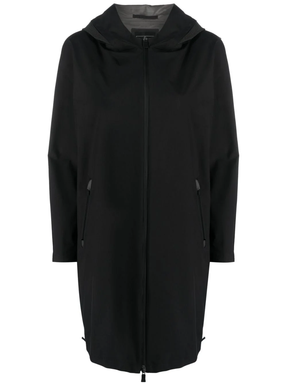 Laminar hooded parka coat This black coat showcases Herno's minimalist design approach and functional expertise. It's crafted from 2-layer waterproof GORE-TEX PACLITE® shell with fully heat-taped seams and fitted with a hood for additional protection. Highlights - Black - Waterproof gore-tex® material - Classic hood - Long sleeves - Two zip-fastening pockets - Front two-way zip fastening - Taped seams Imported Composition Polytetrafluoroethylene (PTFE) 100%, Polyamide 100%, Polyester 100% SIZE & FIT Model measurements Height 5 ft 11 in(1.8 m) Bust/Chest 34.25 in(87 cm) Hips 35.82 in(91 cm) Waist 24.8 in(63 cm) FittingInformation Designed to be unstructured, offering a loose fit throughout Made from a lightweight non-stretch fabric This piece fits true to size – take your usual size