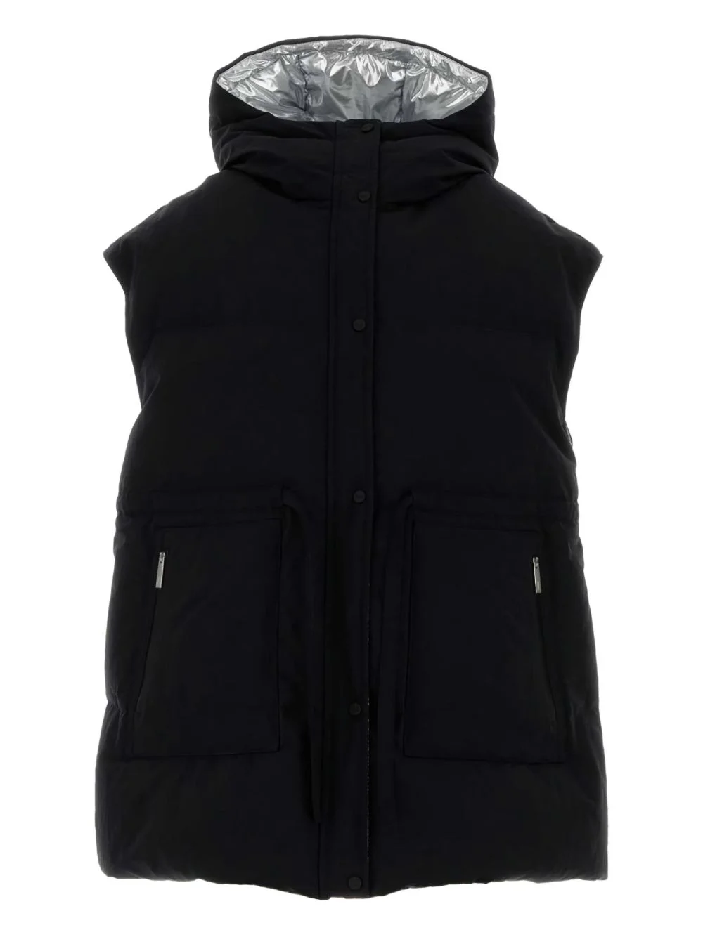 Laminar hooded sleeveless down jacket Highlights - Black - Hooded - Sleeveless - Front pockets - Button fastening - Drawstring waist Made in Italy Composition Outer: Polyester 73%, Cotton 27% Lining: Nylon 100% Washing instructions Read Manufacturer Guidelines