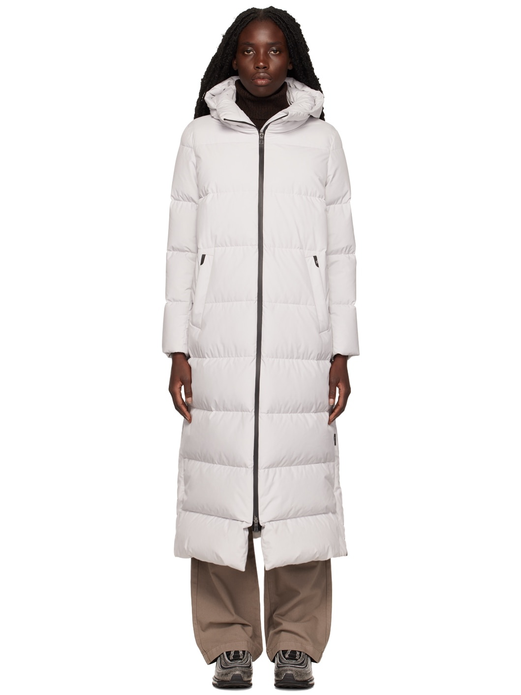 Down-filled quilted Gore-Tex Infinium™ polyester taffeta jacket. Water-repellent and windproof. · Funnel neck at hood · Two-way zip closure · Welt pockets · Textile logo flag at side seam · Vented side seams · Zip pocket at interior · Full nylon taffeta lining Supplier color: Chantilly Fill: 80% goose down, 20% goose feather. Body: 100% polyester. Lining: 100% polyamide.
