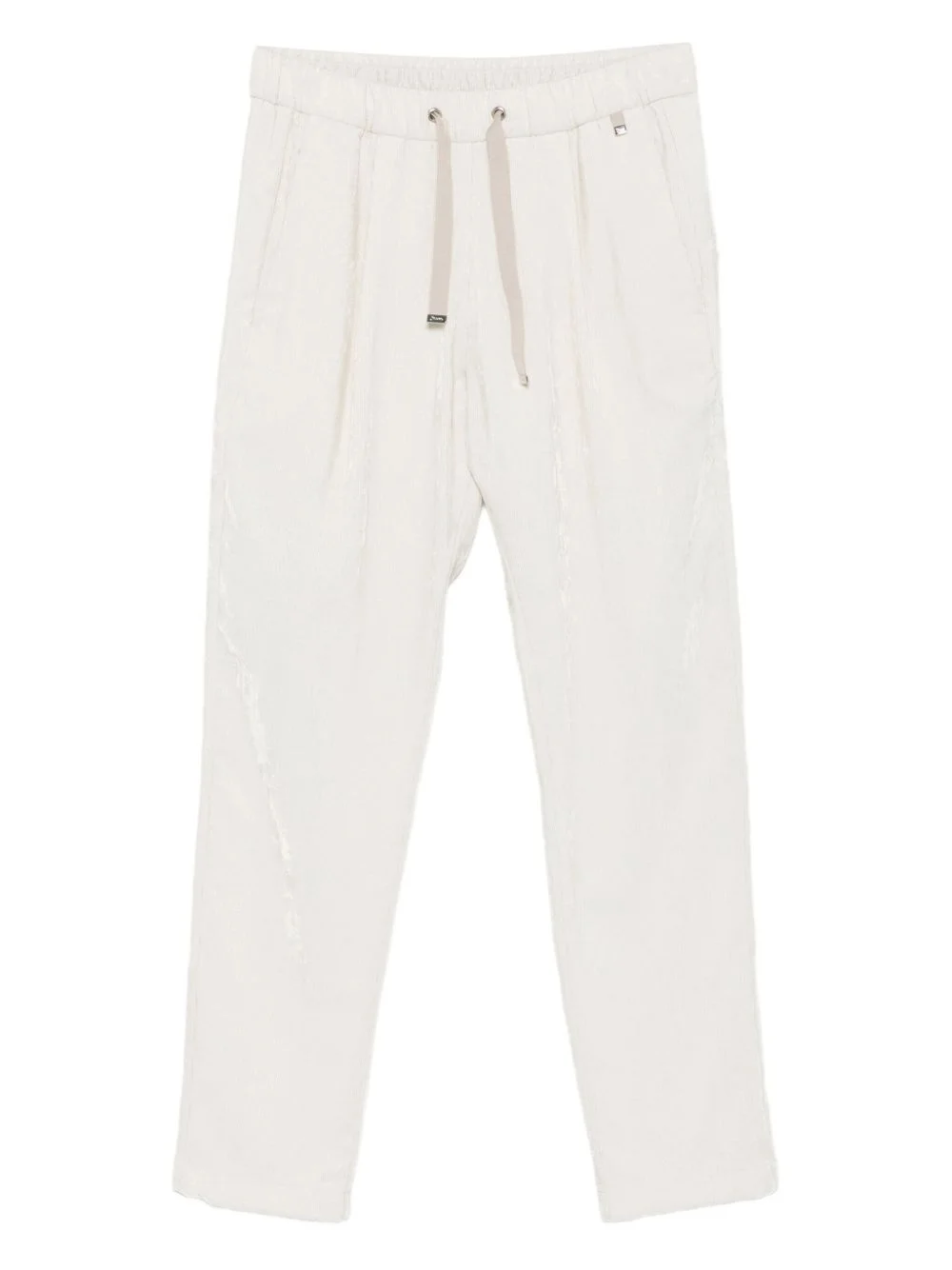 Resort pleated drawstring trousers Highlights - Off-white - Pleated detailing - Drawstring waist - Seam detail - Straight leg Imported Composition Outer: Viscose 76%, Polyester 16%, Metallised Fibres 8% Lining: Acetate 65%, Polyester 35% SIZE & FIT Model measurements Height 5 ft 10 in(1.77 m) Bust/Chest 33.07 in(84 cm) Hips 37 in(94 cm) Waist 24.8 in(63 cm) FittingInformation Designed for a tapered fit, these trousers allow for a close fit at the waist and a loose unrestricted fit over the leg with a closer fit towards the ankle Adjust this piece’s waistband to your preference using the drawstring Made from a midweight non-stretch fabric Washing instructions Dry Clean Only