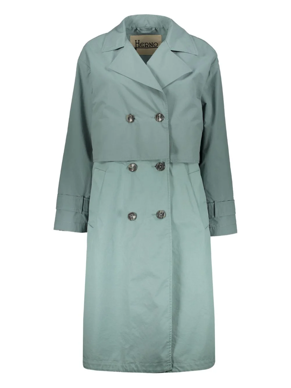 layered rain coat Highlights - Teal green - Double-breasted button fastening - Two side welt pockets - Belted cuffs - Notched collar Imported Composition Cotton 100%, Polyester 100% Washing instructions Dry Clean Only