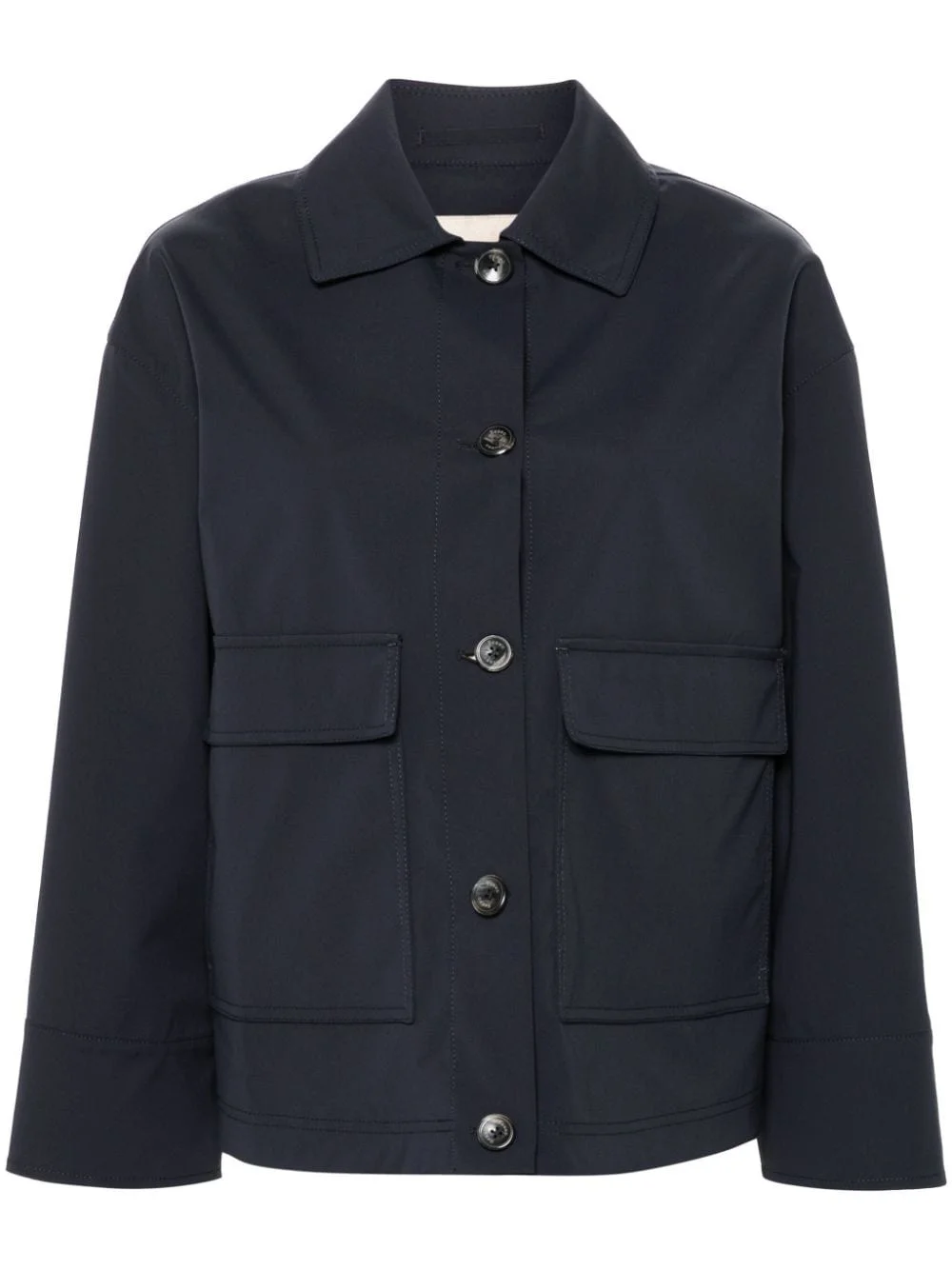 lightweight jacket Highlights - Navy blue - Lightweight - Classic collar - Front button fastening - Long sleeves - Straight hem - Two front flap pockets - Unlined Imported Composition Polyester 100% SIZE & FIT Model measurements Height 5 ft 10 in(1.78 m) Bust/Chest 33.07 in(84 cm) Hips 36.61 in(93 cm) Waist 24.8 in(63 cm) FittingInformation Designed to be unstructured, offering a loose fit throughout Made from a lightweight non-stretch fabric This piece fits true to size – take your usual size