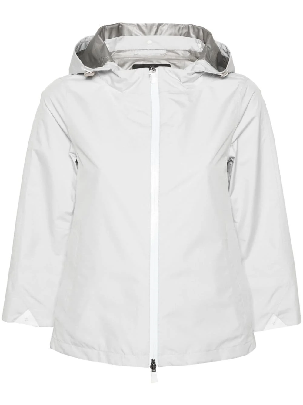 Laminar hooded jacket Highlights - Light grey - Shell - Waterproof - Windproof - Drawstring hood with logo-print - Long sleeves with logo-print - Two side welt pockets - Internal zip-fastening pocket - Straight hem - Front two-way zip fastening Made in Italy Composition Polyurethane 100%, Polyester 100% SIZE & FIT Model measurements Height 5 ft 11 in(1.8 m) Bust/Chest 31.49 in(80 cm) Hips 35.82 in(91 cm) Waist 24.8 in(63 cm) FittingInformation Designed for a relaxed fit, this piece allows for comfort and movement when worn Made from a lightweight non-stretch fabric This piece fits true to size – take your usual size