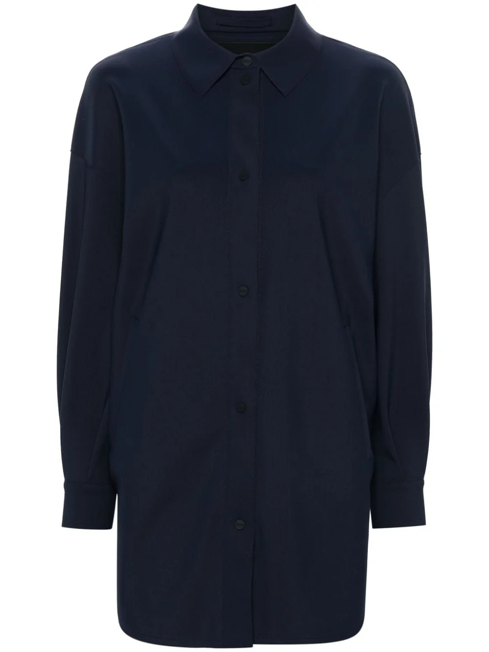 logo-engraved shirt Highlights - Navy blue - Textured finish - Classic collar - Long sleeves - Pleat detailing - Press-stud fastening cuffs - Two side welt pockets - Curved hem - Logo-engraved buttons - Front press-stud fastening Imported Composition Lining: Polyamide 75%, Elastane 25% Outer: Polyamide 75%, Elastane 25% SIZE & FIT Model measurements Height 5 ft 10 in(1.78 m) Bust/Chest 33.46 in(85 cm) Hips 36.22 in(92 cm) Waist 23.22 in(59 cm) FittingInformation Designed to be unstructured, offering a loose fit throughout Made from a midweight stretch fabric, this piece offers elasticity and flexibility when worn This piece fits true to size – take your usual size