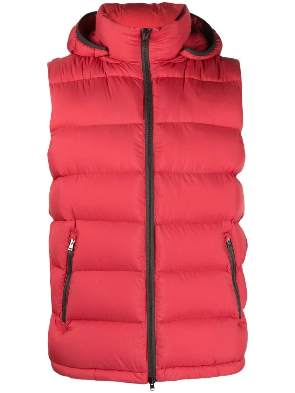 logo-plaque padded gilet Highlights - Bright red - Padded design - Logo patch to the rear - High neck - Front zip fastening - Detachable hood - Sleeveless - Two zip-fastening pockets - Straight hem - When buying this unisex item, keep in mind that it is graded in standard men's sizing Imported Composition Lining: Polyamide 100%, Down 70%, Polyester 30% Outer: Polyamide 100% SIZE & FIT Model measurements Height 6 ft 0 in(1.84 m) Bust/Chest 36.22 in(92 cm) Hips 35.43 in(90 cm) Waist 26.77 in(68 cm) Measurement LENGTH 25.98 in(66 cm)