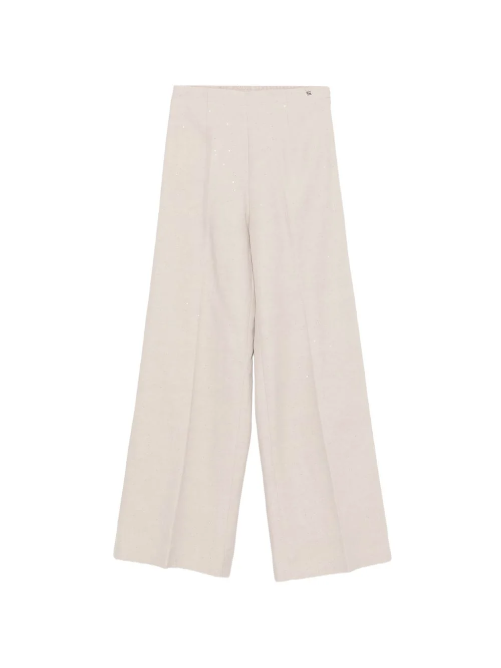 logo-plaque trousers Highlights - Neutrals - Sequin embellishment - Logo plaque Made in Italy Composition Viscose 66%, Linen/Flax 20%, Polyamide 14% Washing instructions Dry Clean Only