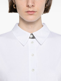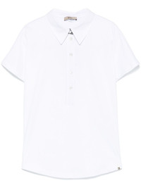 cotton polo top Highlights - White - Short front button fastening - Short side slits - Straight-point collar - Short sleeves Imported Composition Cotton 100%, Polyester 93%, Metallised Fibres 7% SIZE & FIT Model measurements Height 5 ft 10 in(1.77 m) Bust/Chest 31.1 in(79 cm) Hips 34.64 in(88 cm) Waist 24.01 in(61 cm) FittingInformation Designed for a slim fit that sits just away from the body offering a close yet comfortable fit Made from a midweight non-stretch fabric, this piece offers minimal elasticity when worn