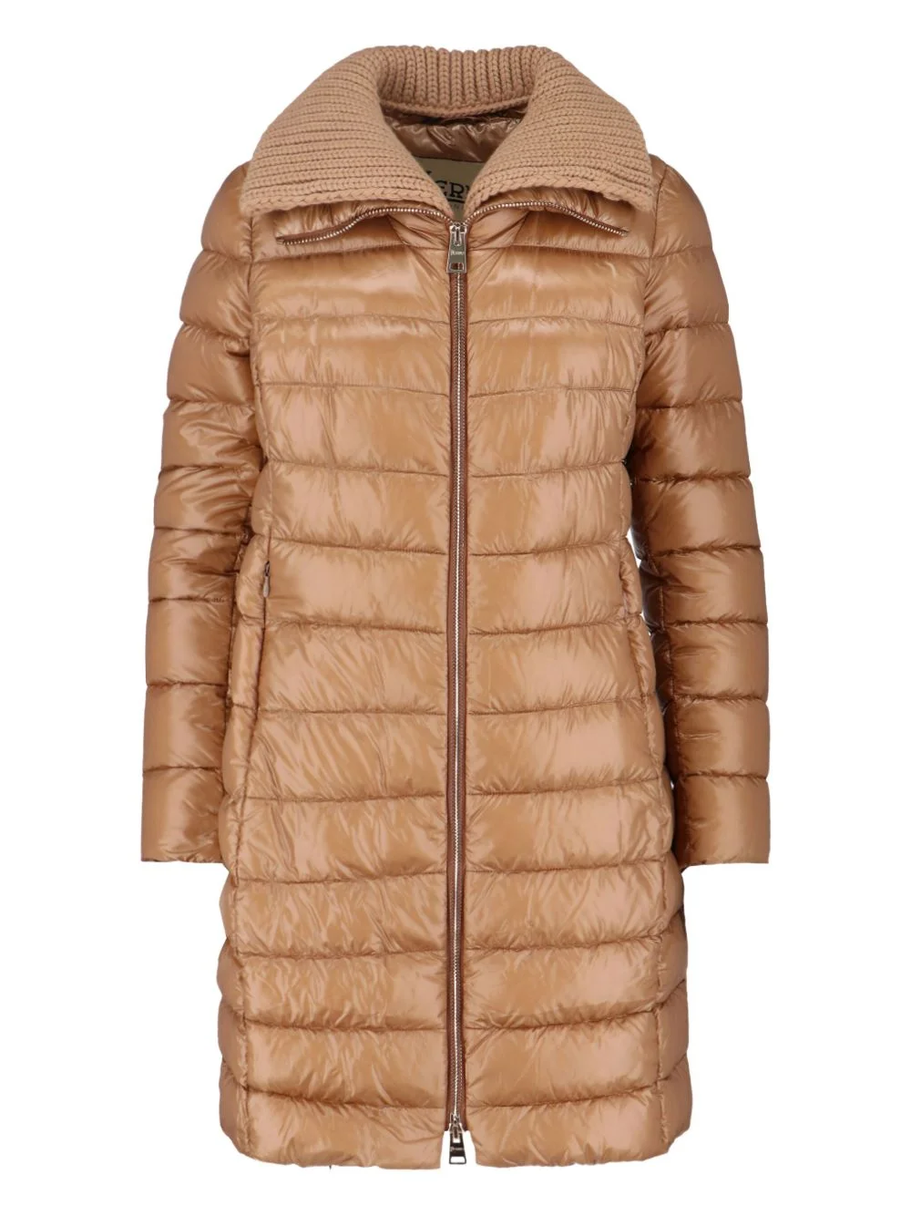knitted-collar quilted coat Highlights - Brown - Knitted collar - Zip fastening - Quilted - Long sleeves Imported Composition Polyester 100% Washing instructions Read Manufacturer Guidelines