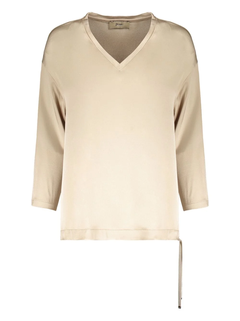 long-sleeve V-neck top Highlights - Beige - V-neck - Long sleeves - Side detail Made in Italy Composition Bio Acetate 71%, Viscose 29% Washing instructions Read Manufacturer Guidelines