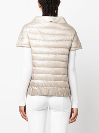 Margherita short-sleeve quilted jacket Highlights - Cream white - Down-feather filling - Quilted - Padded design - Round neck - Concealed front press-stud fastening - Short sleeves - Two side welt pockets - Straight hem Imported Composition Lining: Polyamide 100%, Feather Down 100%, Cotton 55%, Polyester 45% Outer: Polyamide 100% Washing instructions Machine Wash
