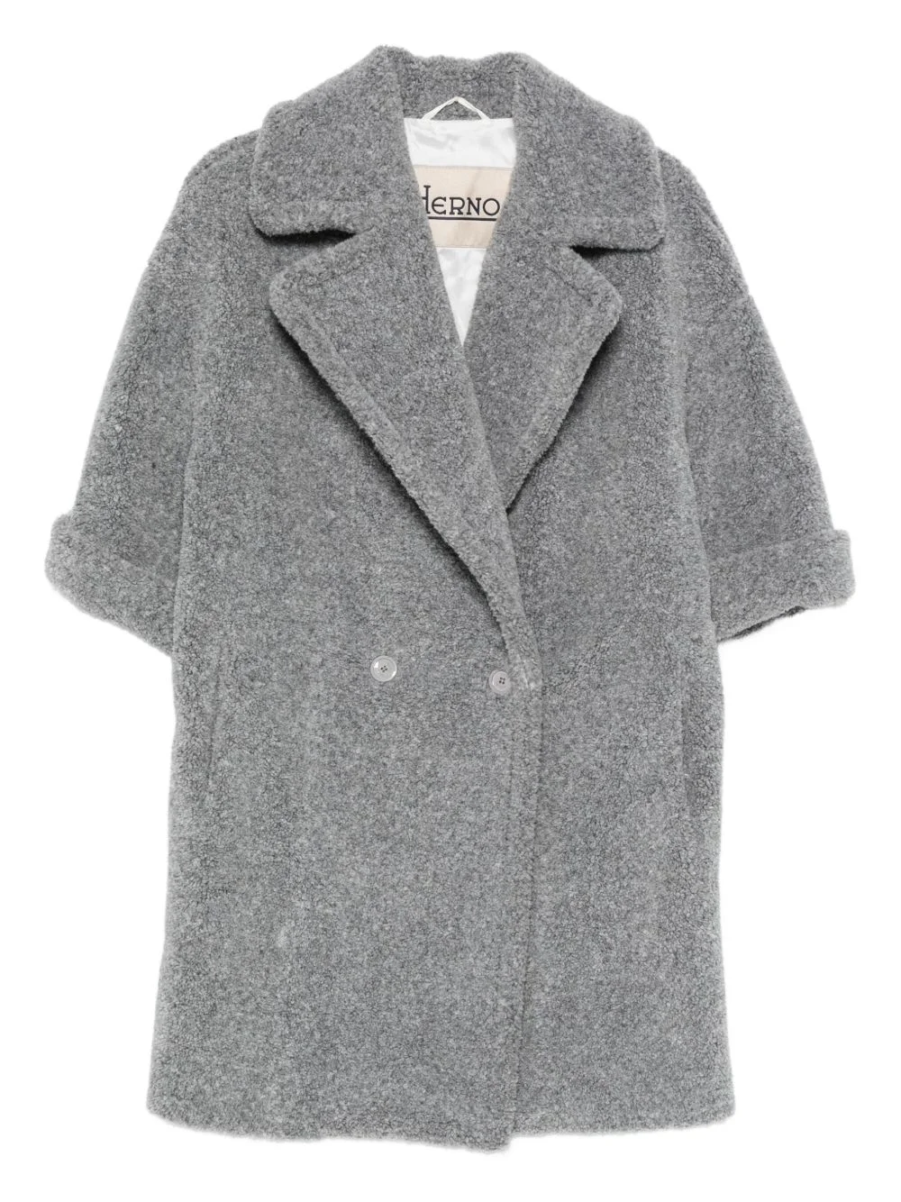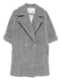 Melange teddy coat Highlights - Grey - Double-breasted - Short sleeves - Lapel collar - Button fastening Made in Italy Composition Outer: Polyester 100% Lining: Acetate 65%, Polyester 35% SIZE & FIT Model measurements Height 5 ft 9 in(1.76 m) Bust/Chest 31.88 in(81 cm) Hips 35.43 in(90 cm) Waist 24.8 in(63 cm) Washing instructions Read Manufacturer Guidelines