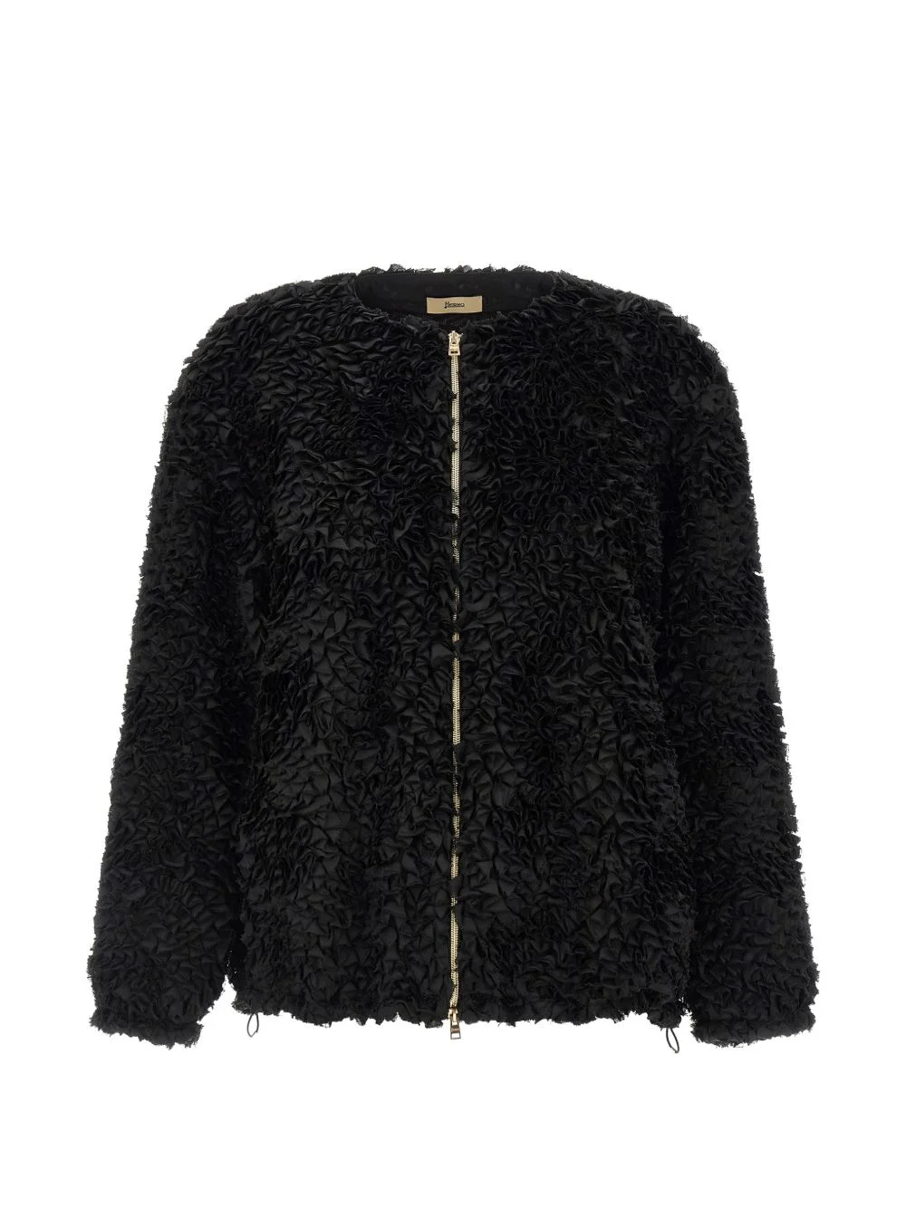 long-sleeve ruffle jacket Highlights - Black - Tulle - Crew neck - Zip fastening - Long sleeves - Elasticated cuffs Made in Italy Composition Polyester 100% Washing instructions Read Manufacturer Guidelines