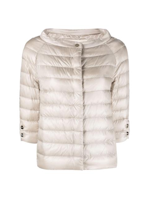 boat-neck jacket Highlights - Black - Feather down - Black - Front button fastening - Three-quarter length sleeves - Buttoned cuffs - Straight hem Imported Composition Outer: Polyamide 100%, Cotton 60%, Acetate 40% Lining: Polyamide 100%, Feather Down 100% SIZE & FIT Measurement SLEEVE LENGTH 26.37 in(67 cm) Shoulder Width 19.68 in(50 cm) LENGTH 27.95 in(71 cm) WAIST 36.22 in(92 cm) BUST 34.64 in(88 cm) Washing instructions Hand Wash