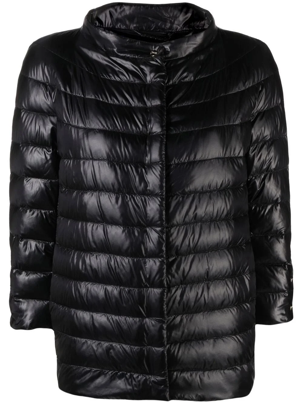 mock-neck quilted puffer jacket Herno's focus on functionality continues to be highlighted in its SS23 collection, as shown in this jacket's padded construction. Paired with a monochromatic colourway, the outerwear garment also effortlessly ties in with current minimalist trends. Made in Italy Composition Filling: Down 90%, Feather 10% Outer: Polyamide 100% Lining: Polyamide 100% SIZE & FIT Model measurements Height 5 ft 10 in(1.77 m) Bust/Chest 31.49 in(80 cm) Hips 35.03 in(89 cm) Waist 23.22 in(59 cm) FittingInformation Designed to be fitted across the shoulders, becoming looser as it falls Made from a padded non-stretch fabric, giving it no natural elasticity This piece fits true to size – take your usual size Washing instructions Hand Wash