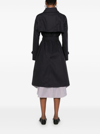 belted trench coat Highlights - Navy blue - Double-breasted button fastening - Buttoned cuffs - Two side welt pockets - Central rear vent Imported Composition Lining: Viscose 100%, Acetate 65%, Polyester 35% Outer: Cotton 100% SIZE & FIT Model measurements Height 5 ft 11 in(1.8 m) Bust/Chest 31.49 in(80 cm) Hips 36.61 in(93 cm) Waist 24.4 in(62 cm) FittingInformation Designed to be unstructured, offering a loose fit throughout The belt offers adjustability for fitted preferences Made from a midweight non-stretch fabric