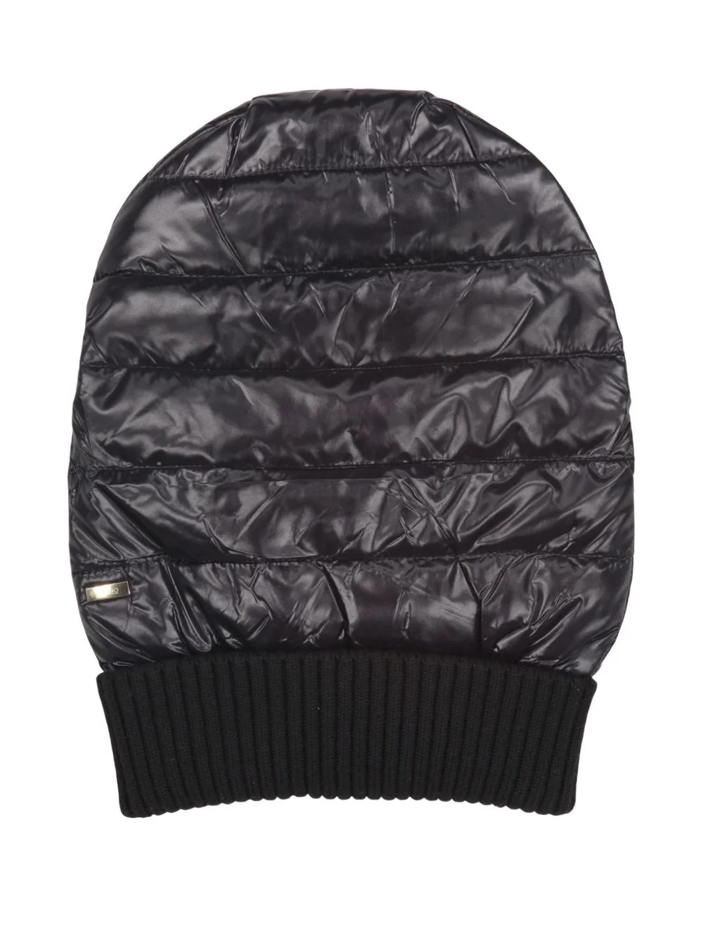 padded beanie Highlights - Navy blue - Ribbed detailing - Gold-tone logo plaque - Pull-on style Made in Italy Composition Outer: Nylon 100%, Wool 47%, Acrylic 47%, Polyamide 5%, Elastane 1% Lining: Goose Down 90%, Goose Feather 10% Washing instructions Hand Wash