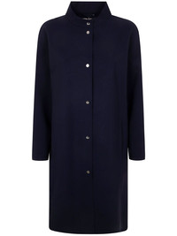 band-collar buttoned coat Highlights - Navy blue - Front button fastening - Band collar Made in Italy Composition Polyamide 75%, Elastane 25% SIZE & FIT FittingInformation Designed to be unstructured, offering a loose fit throughout Made from a midweight stretch fabric, this piece offers elasticity and flexibility when worn